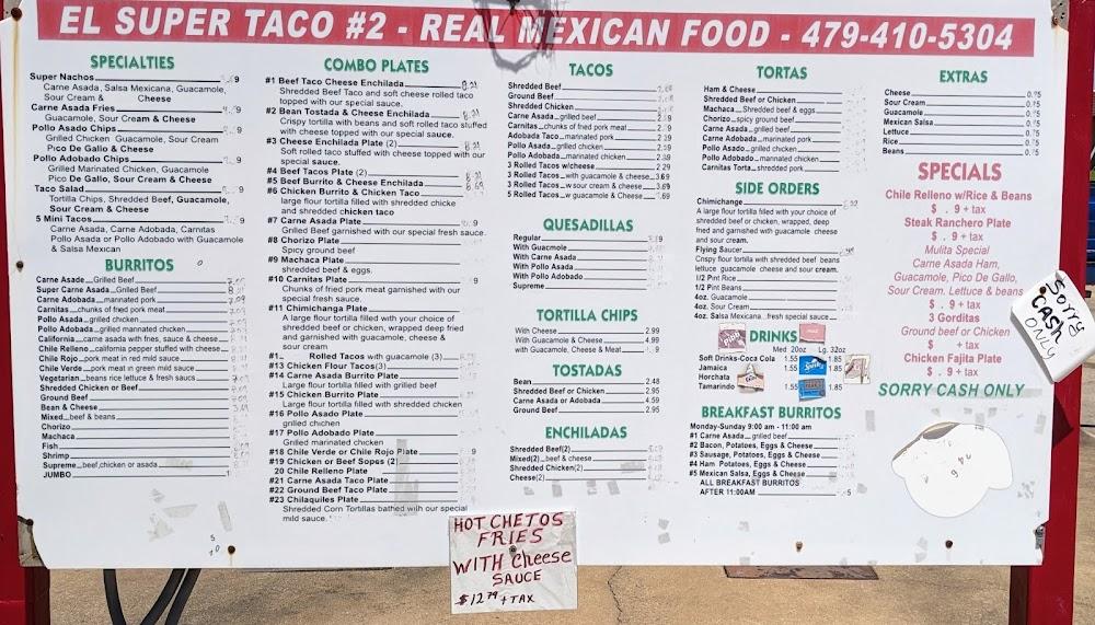 Welcome to El Super Taco, your go-to spot for authentic Mexican flavors in Van Buren, AR! Located at 2624 Bryan Rd, we offer a relaxed atmosphere perfect for solo diners and families alike. Our menu features mouth-watering tacos, burritos, and nachos, all made with fresh ingredients and vibrant spices. Enjoy your meal on our spacious terrace or grab it to go through our convenient drive-thru service. With affordable prices and a commitment to quality, El Super Taco is the ideal destination for a casual lunch or dinner. Join us today and taste the difference!